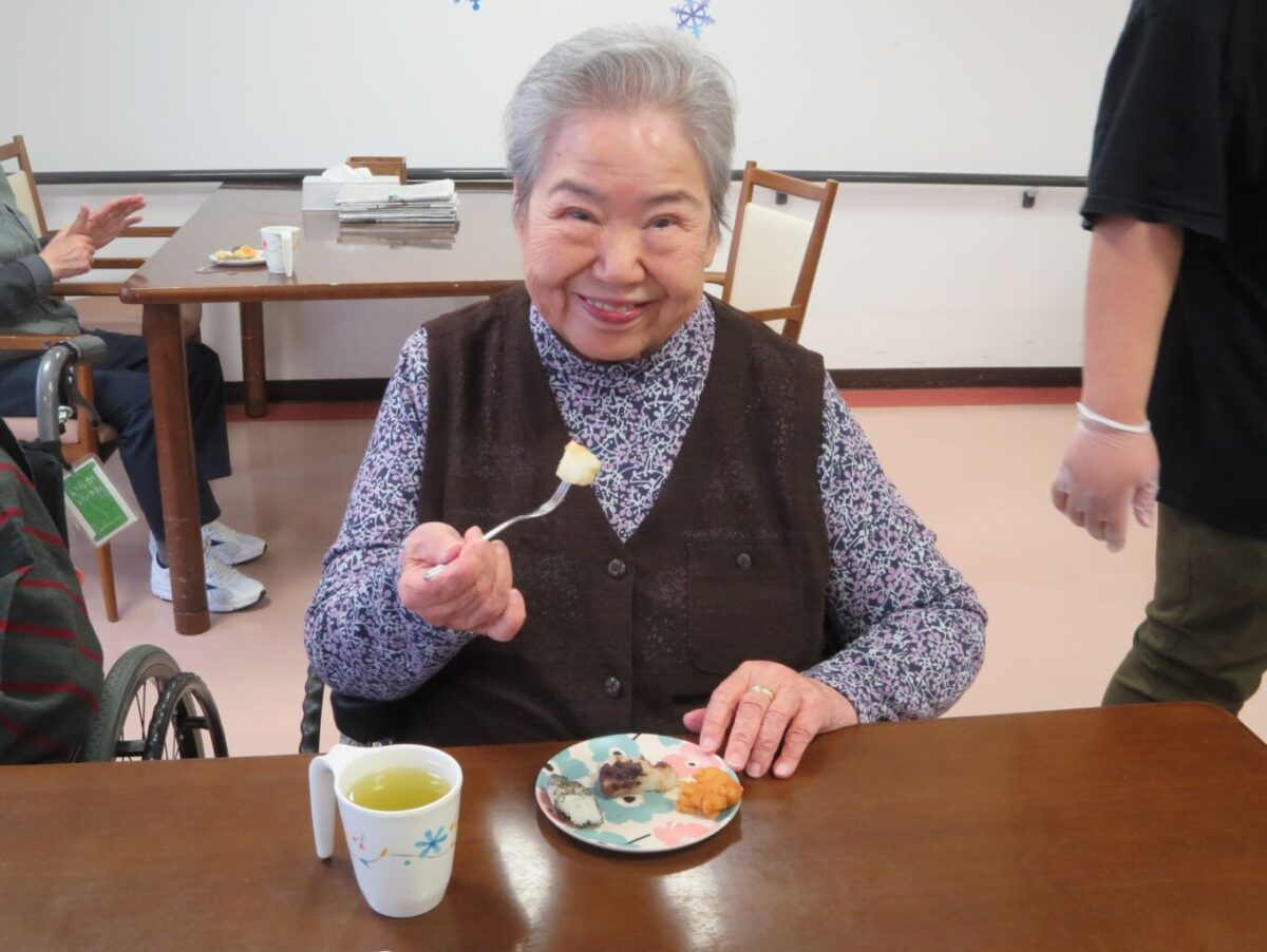 「やっぱりつきたてのお餅は美味しいわ!」と餅つきの雰囲気とお餅を楽しんでおられました😊