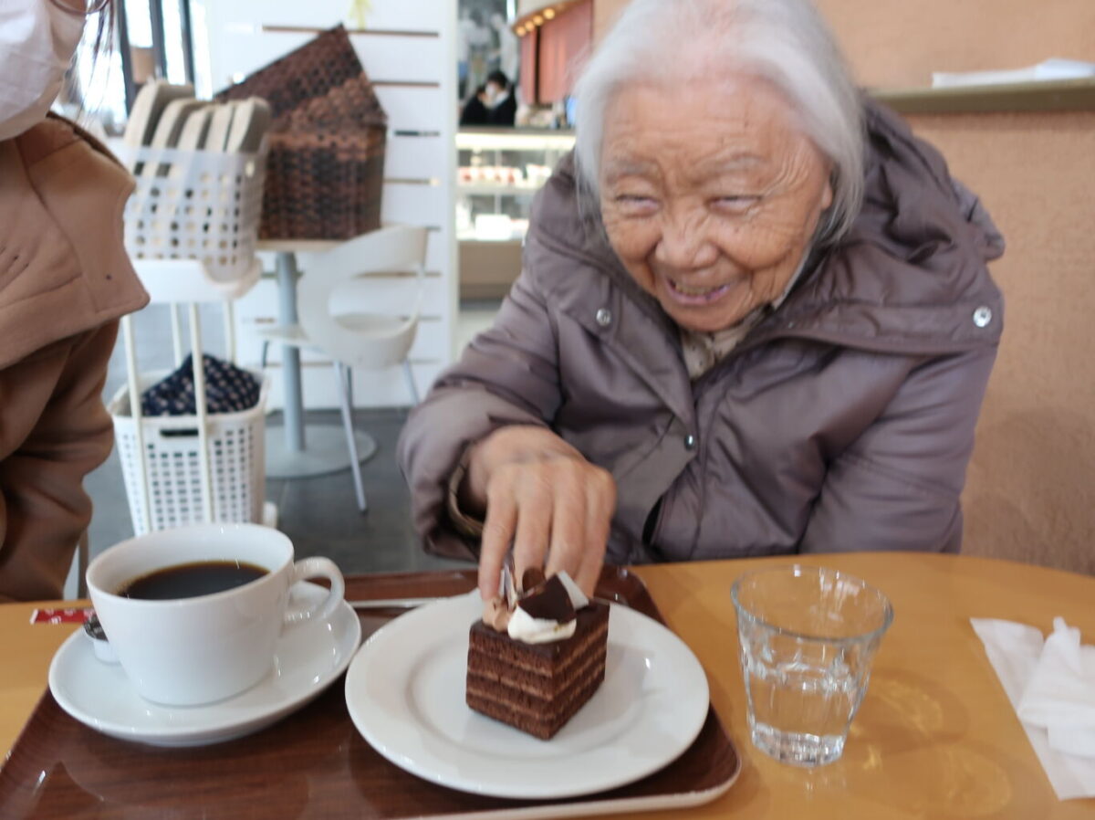 開運堂ではチョコレートケーキとコーヒーを注文されました。