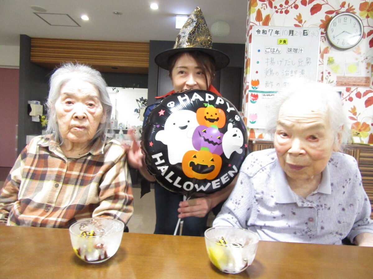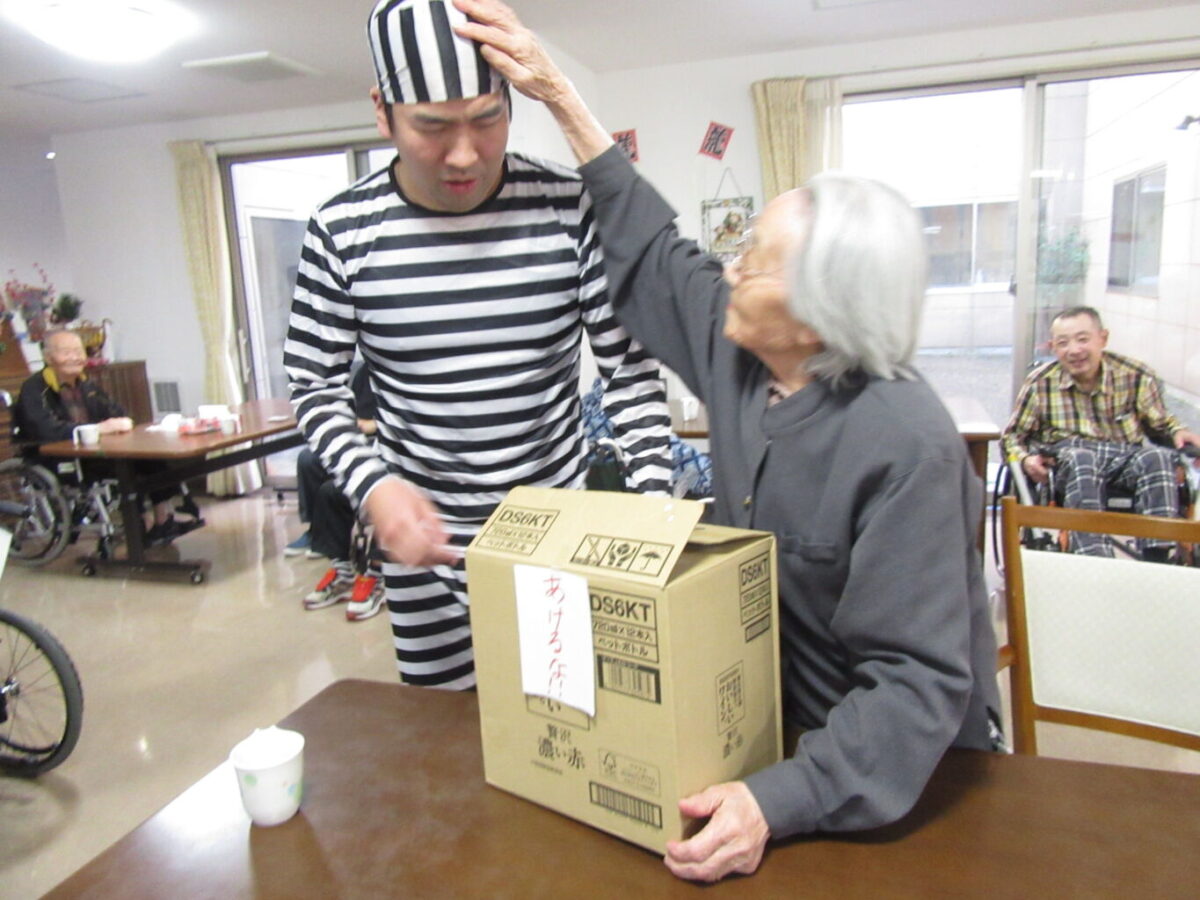 10月末のある日、ハロウィン・パーティーが行われました。囚人に扮した職員が現れ、何かを盗んでいこうとしますが・・・心優しいご入居者様が囚人の頭を笑顔でナデナデ💓してくださいました。