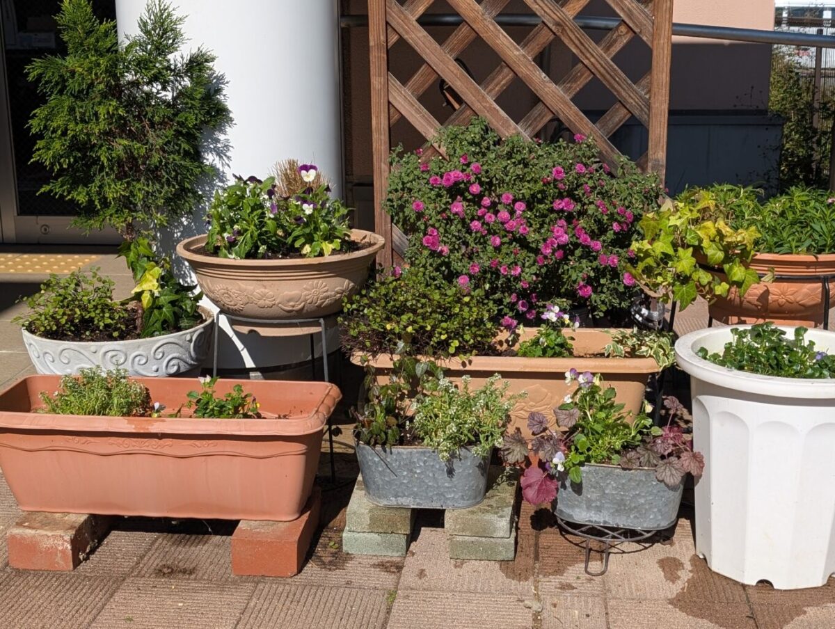 花植えのお好きなご利用者様と一緒に、猛暑を越したお花たちに