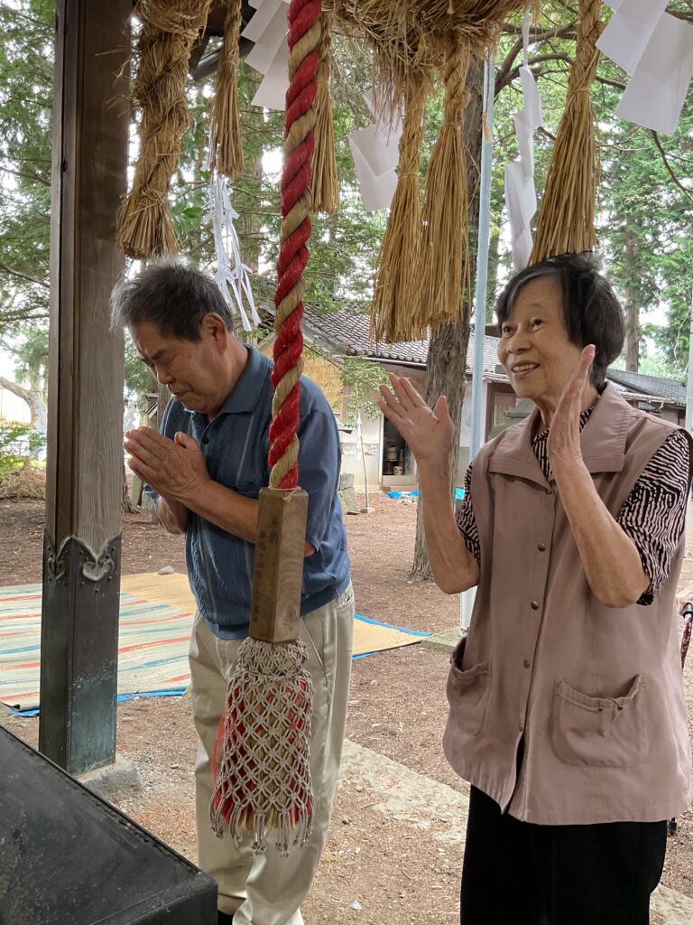 塩尻市高出地区の鎮守の神様「髙日出神社」を参拝されたご夫妻は。「これからもお互い元気に支え合っていきます。」と仲睦まじく寄り添っておられました。