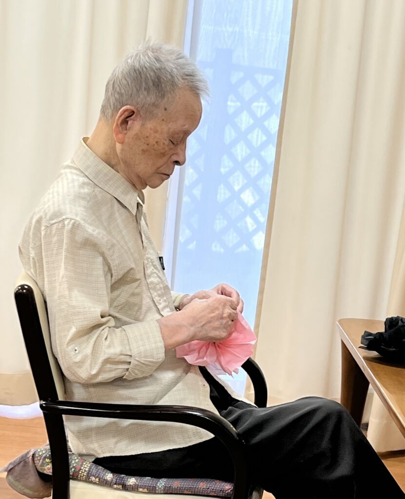 季節ごとに行うイベント前には、皆様にご協力頂きフロアを彩る作品を作って頂いています。細かな作業もあり、なかなか大変ですが指先の運動にもなります。
