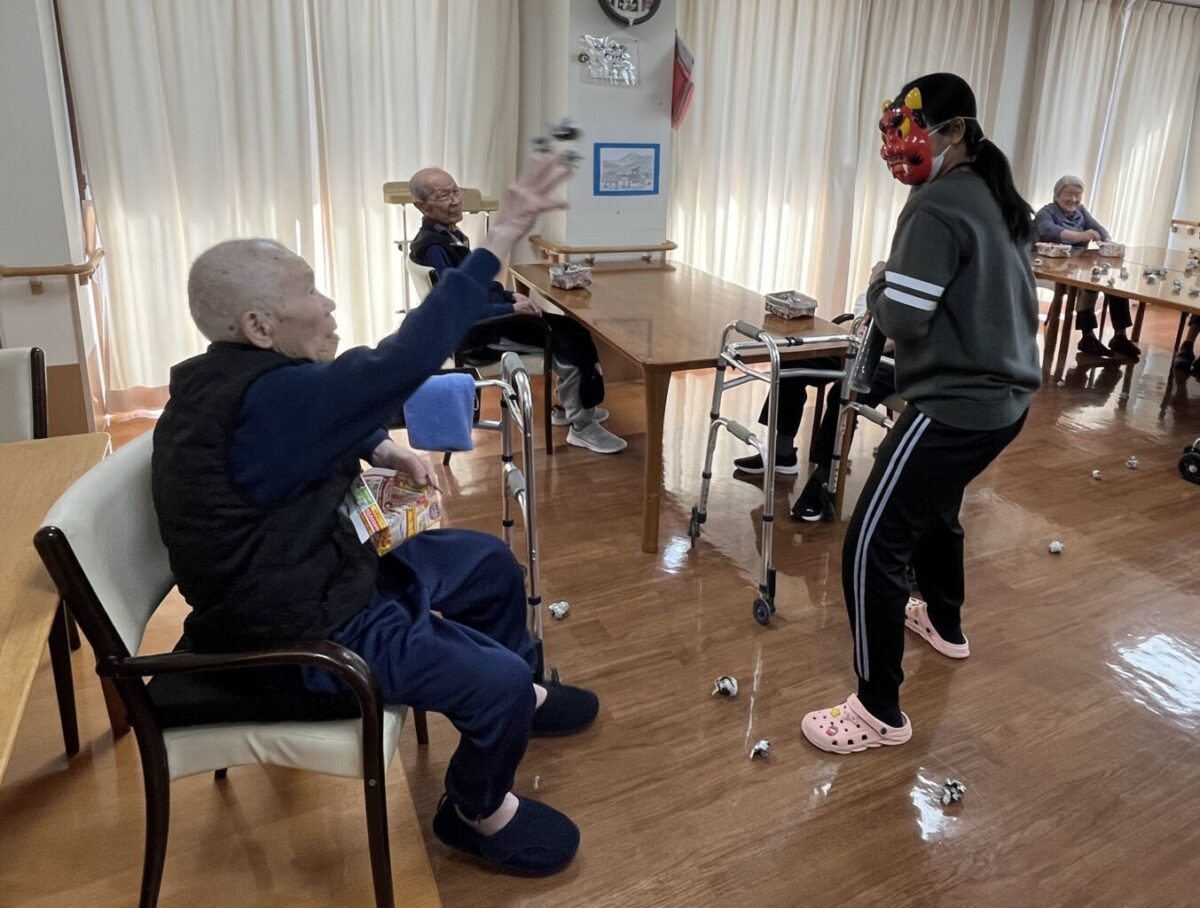 そして「鬼は外~ 福は内~」と豆に見立てた丸めた新聞紙を鬼に優しく投げておられました。    暦の上では春ですが、ここからが寒さの本番です。皆様体調を崩さないように元気で本当の春を迎えましょう。