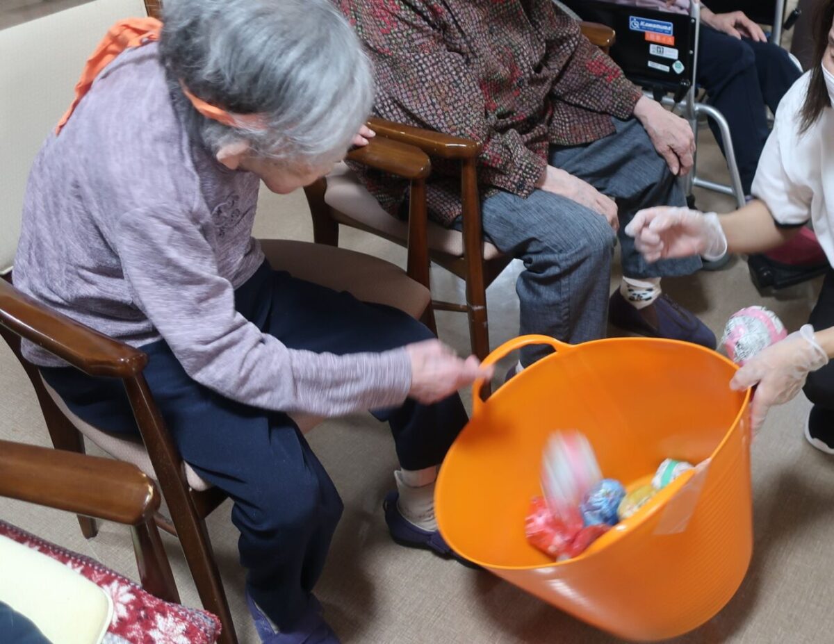 玉入れは一人の持ち玉4個。どちらが多くカゴに入れられるかを競いましたが、