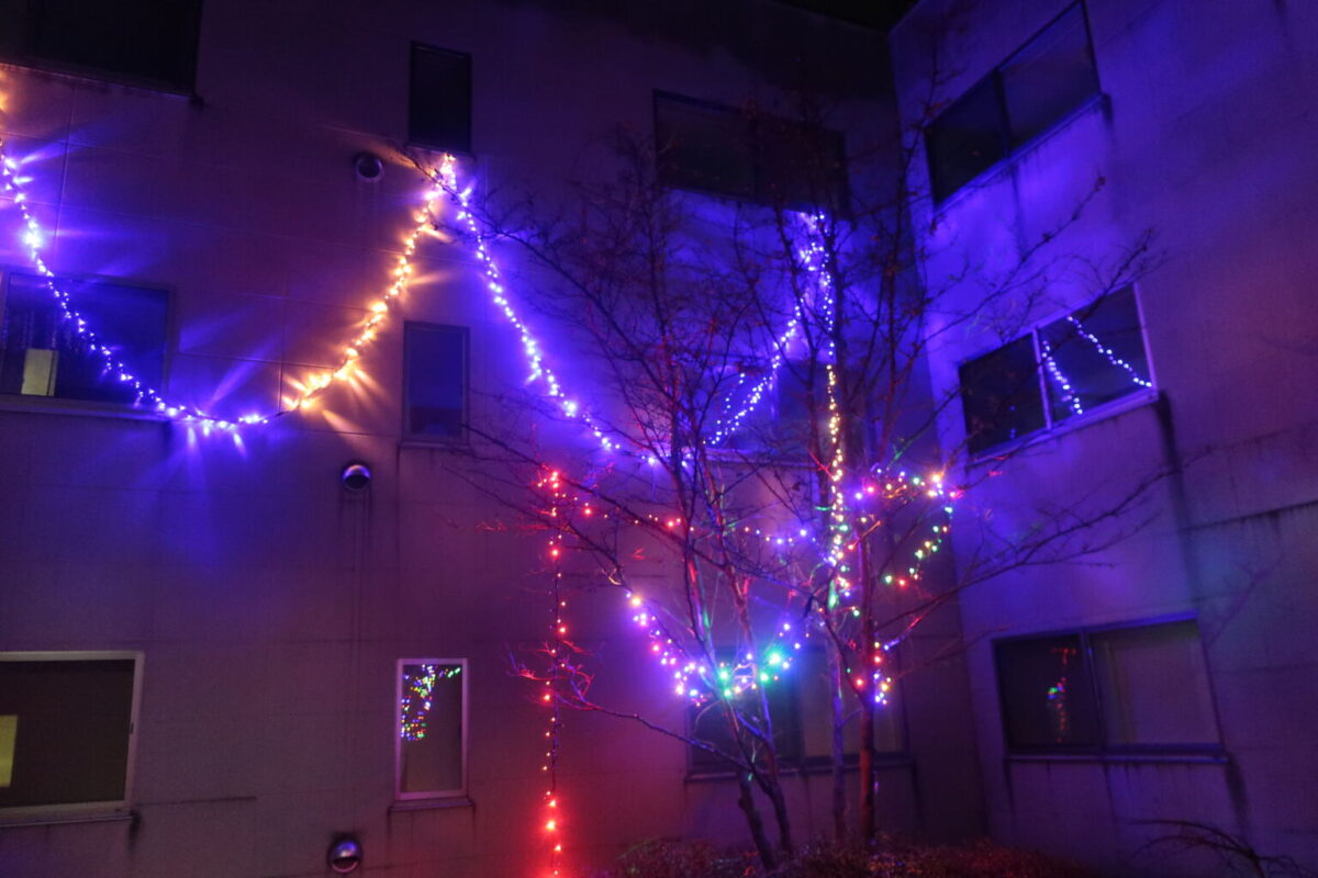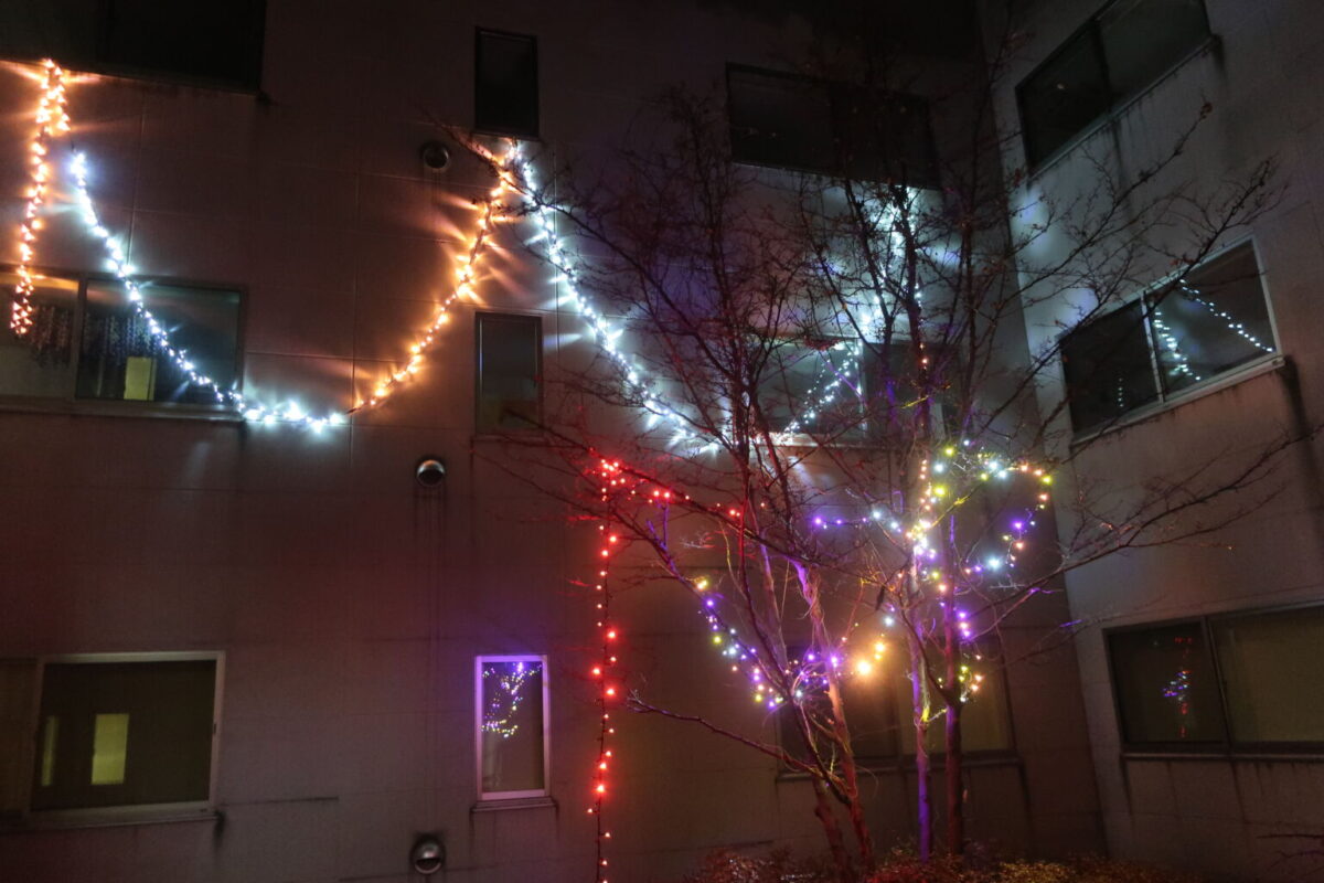 少し準備が遅くなりましたが、中庭にイルミネーションを飾り付けました✨