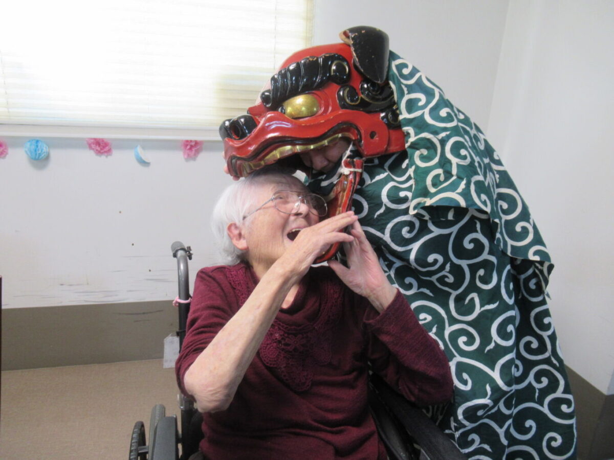 ウィズ諏訪では、獅子舞のレクを開催しました。本日は3Fです✨