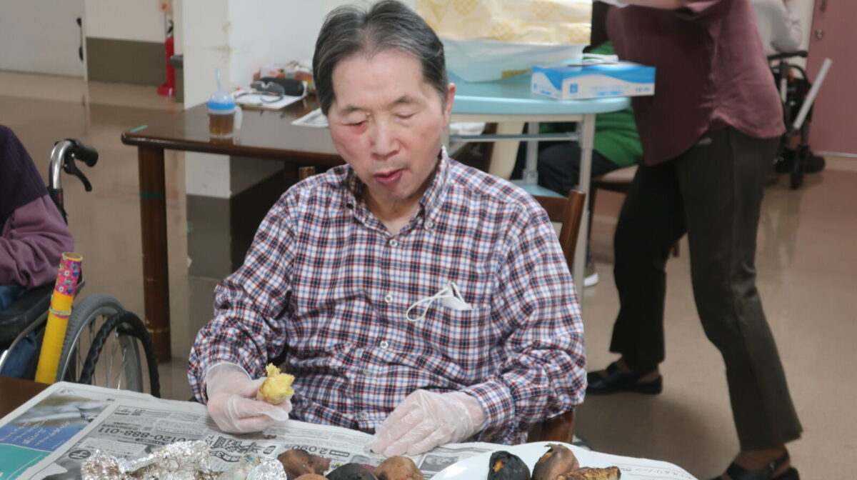 美味しいサンマを食べた後はおやつの焼き芋です。昨日利用者様が一生懸命用意してくれたお芋をじっくり焼き15時のおやつに召し上がりました♬