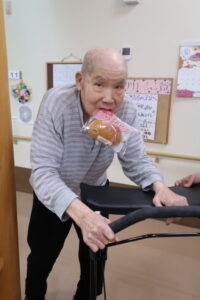 パンをゲットしニッコリ笑顔です。おやつに頂きました☺