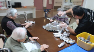 美味しいサンマを食べた後はおやつの焼き芋です。昨日利用者様が一生懸命用意してくれたお芋をじっくり焼き …