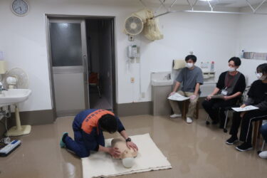 12月8日に施設内で救急隊をお招きし救命救急の講習会を行いました。いざという時に対応が行えるよう多く …