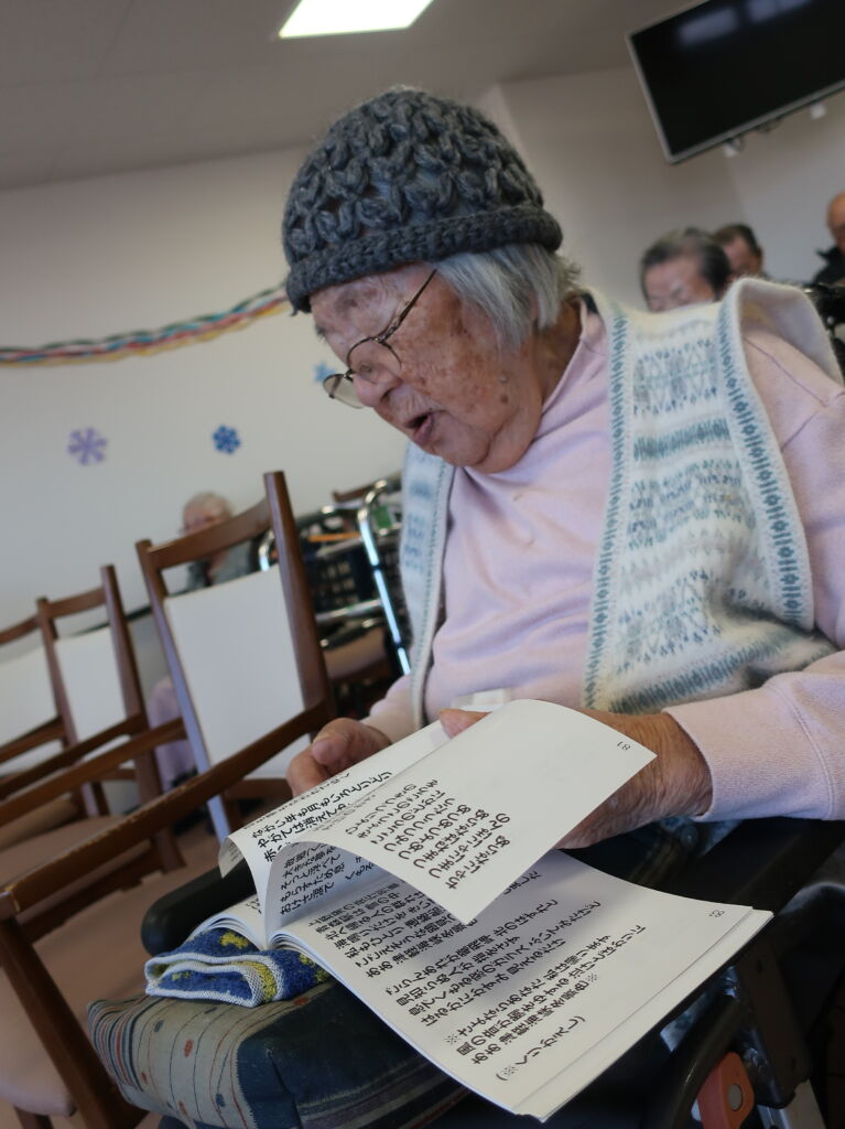 歌集もお借りする事ができ、知っている曲が流れると口ずさみながら楽しまれていました🎀